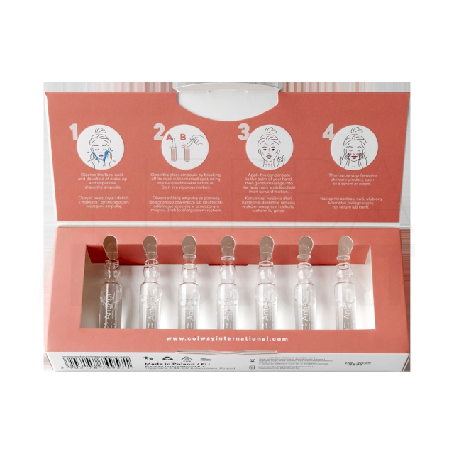 Očistite tvár, krk a dekolt od make-upu a nečistôt, pretrepte ampulku.