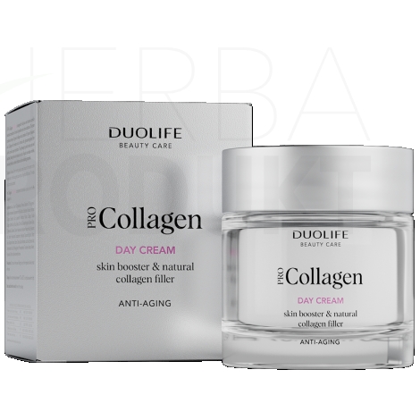 Pro Collagen Day Cream je denný krém so starostlivo vybraným zložením zložiek prírodného pôvodu a účinných látok. Krém obsahuje až 8 druhov kolagénov a komplex 5 druhov kyselín hyalurónových. Kolagén s melanínom a receptúra s glykozaminoglykánmi z medúzy zaisťujú správnu hydratáciu pokožky. Ľahká, jemná textúra sa optimálne vstrebáva a zanecháva pokožku vyživenú a napnutú. Pravidelné používanie znižuje viditeľnosť vrások, poskytuje revitalizáciu a hydratáciu pokožky a upokojuje podráždenia.