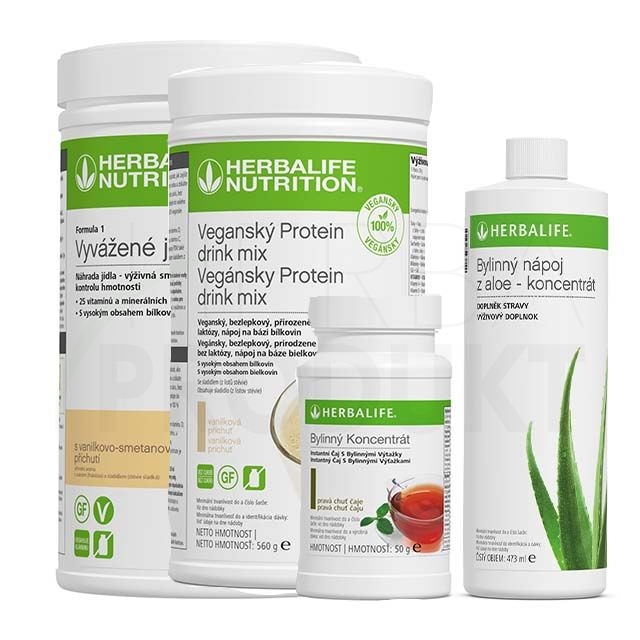 Formula 1 - 780g bezlepková (Vanilka), Protein Drink Mix Vegánsky 560g (Vanilka), Aloe 473 ml (bez príchute/príchuť Mango) a Thermojetics 51g (pravá príchuť čaju/citrónová příchuť/broskyňová príchuť)