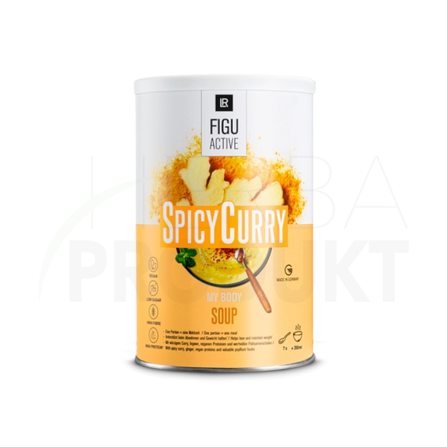 Zloženie: sójový proteínový izolát (28 %), maltodextrín, zemiakové vločky (13 %) (zemiaky (99 %), emulgátor: mono- a diglyceridy mastných kyselín; stabilizátor: difosforečnany; extrakt z korenia), inulín (8 %), zmes karí korenie (5 %) (koriander, kurkuma, senovka grécka, zázvor, chilli, rasca, kardamóm, nové korenie, ligurček, rímska rasca), vývar (hydrolyzovaný kukuričný proteín, soľ, slnečnicový olej), emulgátor: sójové; hrachový proteín (3 %), múka z červenej šošovky (3 %), prírodné aromatické látky, mrkva (2 %), kokosový olej, cibuľa (2 %), fosforečnan draselný, uhličitan vápenatý, pór (1 %), proteínový izolát bôbu obyčajného (1 %), kuchynská soľ, petržlen (1 %), zázvorový prášok (1 %), hydroxid horečnatý, prášok zo šupiek psyllia (1 %), čierne korenie (0,2 %), kyselina L-askorbová, muškátový oriešok , zahusťovadlo: guma guar; protispekavá látka: oxid kremičitý; pyrofosforečnan železitý, oxid zinočnatý, nikotínamid, D-?-tokoferylacetát, síran mangánatý, D-pantothenát vápenatý, sladidlo: steviol-glykozidy zo stévie; antioxidant: alfa-tokoferol; riboflavín, pyridoxín hydrochlorid, tiamín mononitrát, retinylacetát, uhličitan meďnatý, kyselina pteroylmonoglutamová, jodid sodný, seleničitan sodný, fylochinón, D-biotín, cholekalciferol, kyanokobalamín.