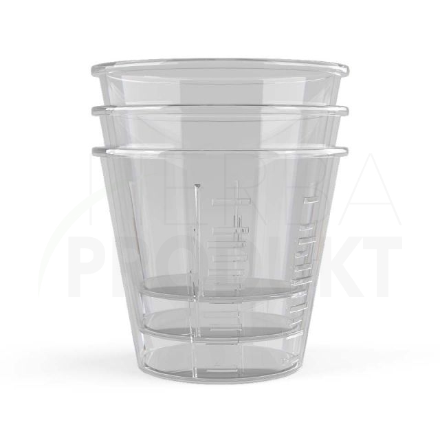 Plastové dávkovacie poháre vhodné do umývačky riadov s mierkou v ml a tsp (kávová lyžička).